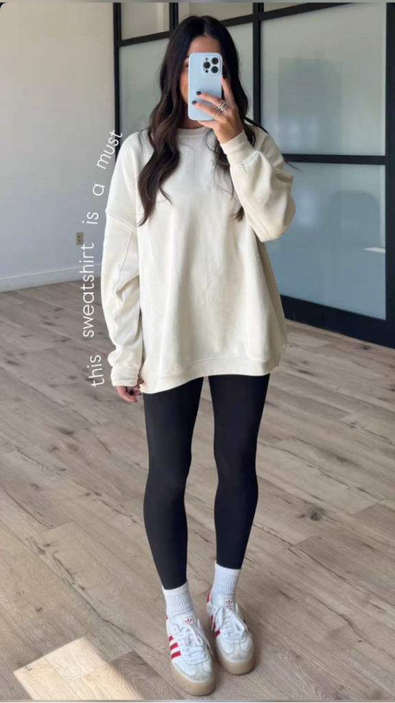 • leggings + oversized sweatshirt